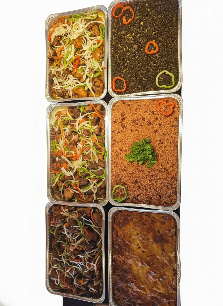 stewed goat, fried chicken, rice & beans and more –